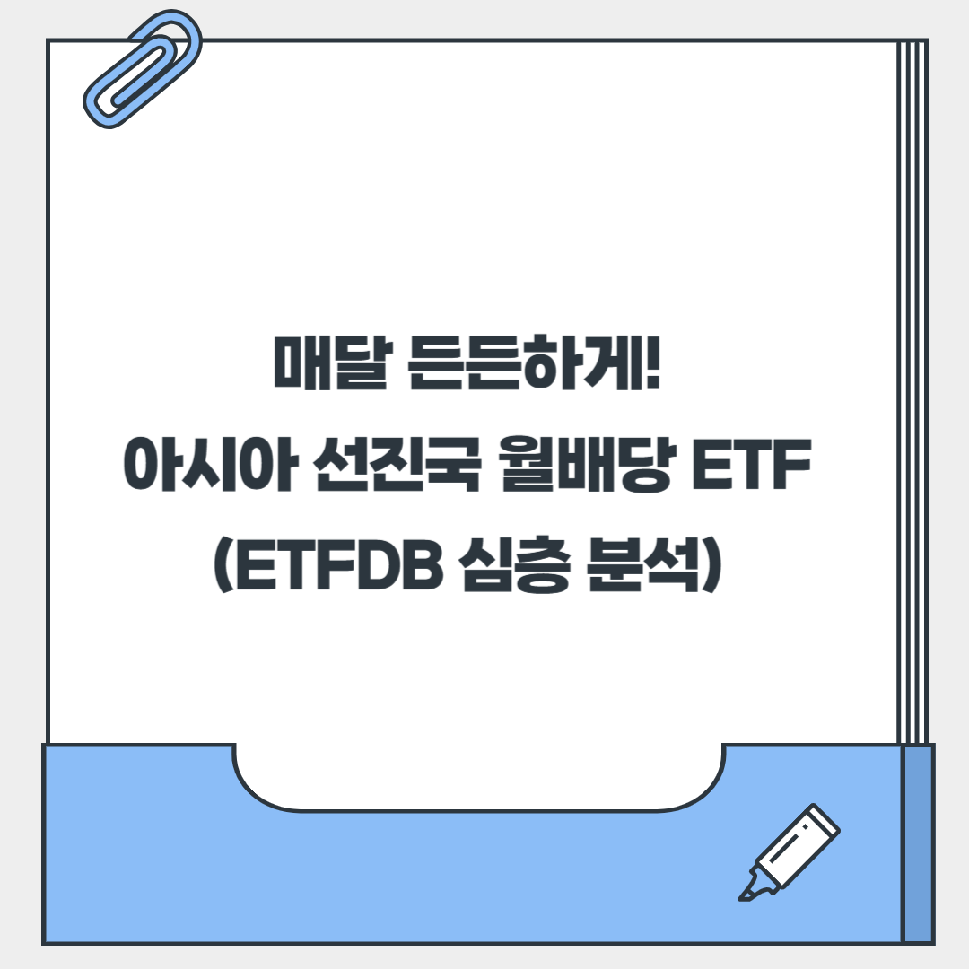 - ETFDB 탐색 팁: 아시아 선진국 월배당 ETF를 찾을 때는 'Developed Asia Pacific' 또는 'Asia Pacific Equities' 카테고리에서 개별 ETF의 배당 지급일(Dividend Date)을 직접 확인하는 것이 가장 정확해요.