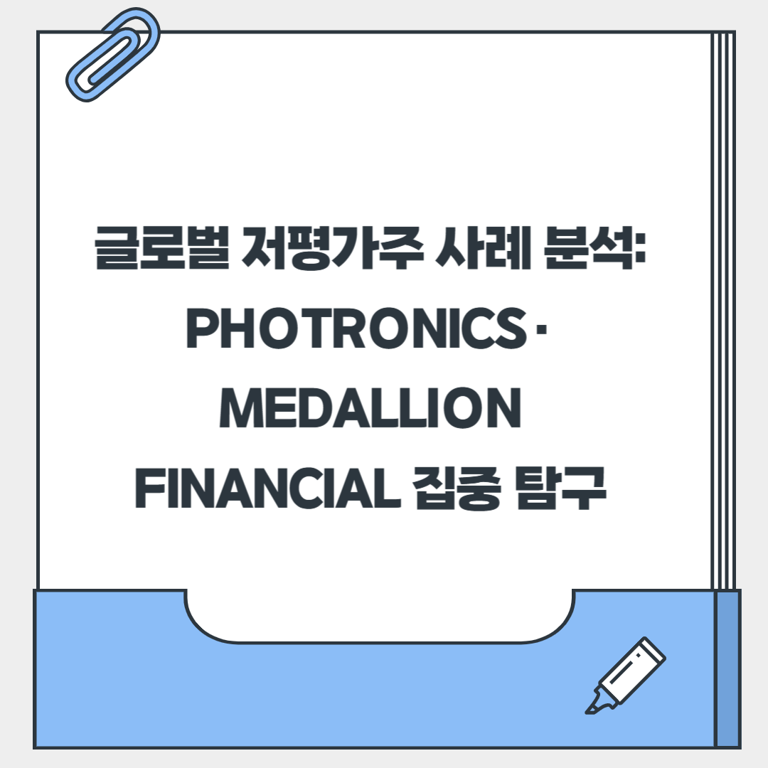 여러분, 주식 투자하다 보면 이런 생각 해보셨죠? "이 주식, 왜 이렇게 저평가되어 있지?" 🤔 맞아요, 시장에는 겉으로는 화려하지 않아도, 숨겨진 보석처럼 저평가된 기업들이 분명히 존재한답니다. 특히 글로벌 시장에는 우리가 잘 모르는 알짜 기업들이 많아요. 저도 처음엔 저평가주를 찾아내는 게 그렇게 어렵더라고요. 그런데 몇몇 사례를 분석해보니, 아하! 하고 감이 올 때가 있더라고요. 오늘은 주식 초보 여러분도 쉽게 이해할 수 있도록, 글로벌 시장의 두 가지 흥미로운 저평가주 사례인 Photronics와 Medallion Financial을 함께 파헤쳐볼까 합니다. 이들이 왜 저평가되었고, 어떤 매력이 있는지 같이 알아볼까요? 😊