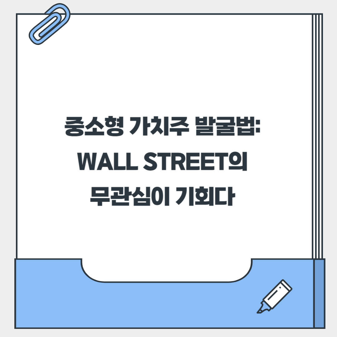 여러분, 주식 투자라고 하면 흔히 삼성전자나 애플 같은 이름만 들어도 아는 대형주를 떠올리실 거예요. 뉴스에서도 맨날 그런 큰 기업들 얘기만 하잖아요? 그니까요, 다들 그쪽만 보니까 시선이 쏠리게 되는 건 어쩔 수 없죠. 하지만 솔직히 말해서, 월스트리트의 큰손들이 미처 발견하지 못한 숨은 보석들이 있답니다! 바로 '중소형 가치주'들이죠. 큰 펀드들은 덩치가 커서 작은 회사에는 투자하기 어렵고, 분석가들도 대형주에만 집중하는 경향이 있거든요. 이런 미관심이 우리 같은 개인 투자자들에게는 엄청난 기회가 될 수 있다는 거, 알고 계셨나요? 오늘은 주식 초보도 쉽게 중소형 가치주를 발굴하고 투자하는 방법을 저와 함께 파헤쳐볼게요! 😊