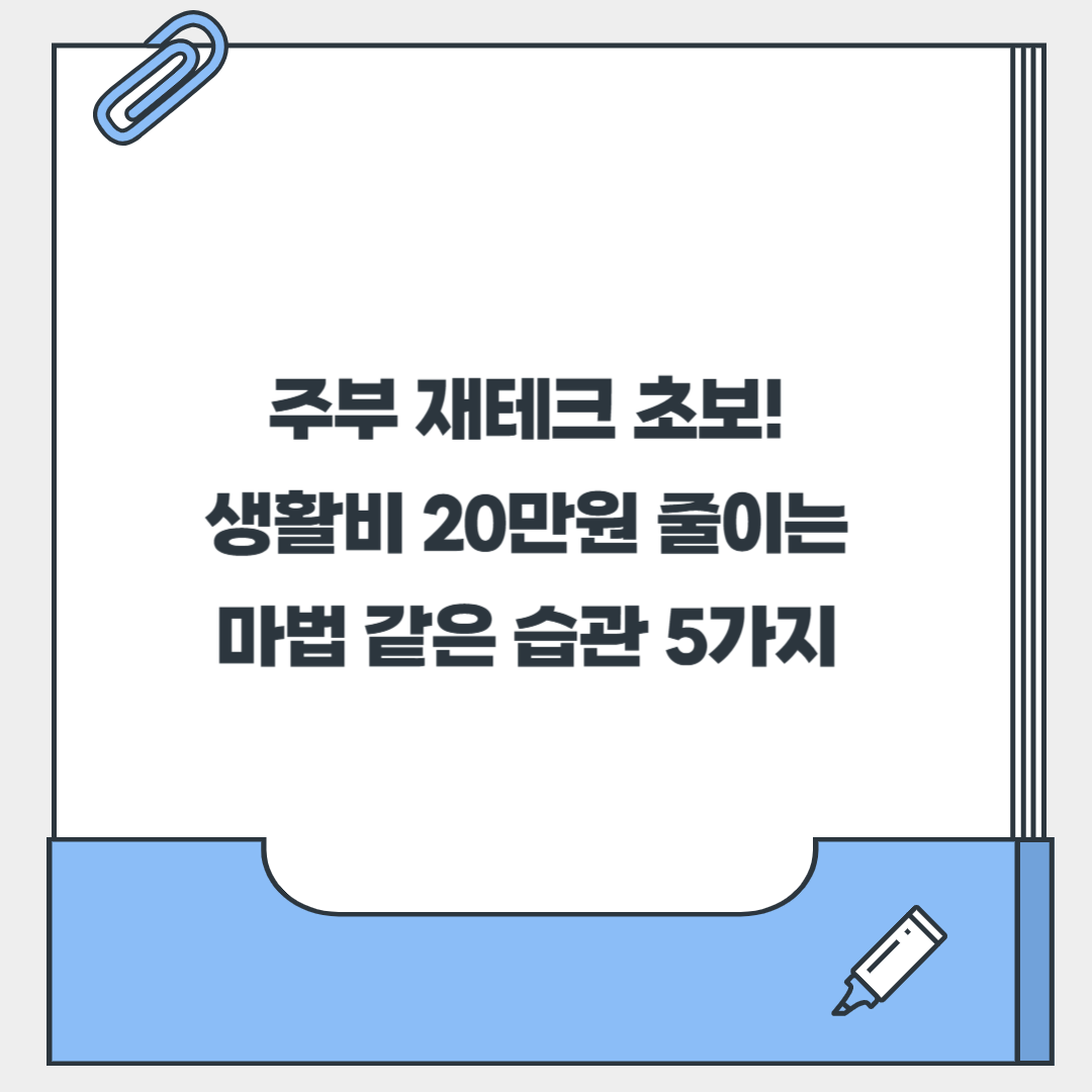 "이번 달도 왜 이렇게 돈이 없지...?", "생활비는 줄이고 싶은데, 뭘 어떻게 해야 할까?" 주부님들이라면 누구나 한 번쯤 이런 고민 해보셨을 거예요. 저도 매달 생활비 정산할 때마다 한숨 푹푹 쉬던 시절이 있었답니다. 😅 솔직히 육아하랴, 살림하랴, 직장 다니랴... 눈코 뜰 새 없이 바쁜데 언제 재테크 공부하고 돈 아낄 궁리까지 하겠어요. 하지만! 제가 직접 해보니, 아주 작은 습관 몇 가지만 바꿔도 생각보다 많은 돈을 아낄 수 있더라고요. 특히 고정 지출을 줄이는 건 정말 마법 같았어요! ✨ 오늘은 주부 재테크 초보도 쉽게 따라 할 수 있는, 생활비 20만원을 거뜬히 줄여주는 5가지 마법 같은 습관을 공유해볼게요! 함께 돈 모으는 재미에 빠져볼까요? 😊