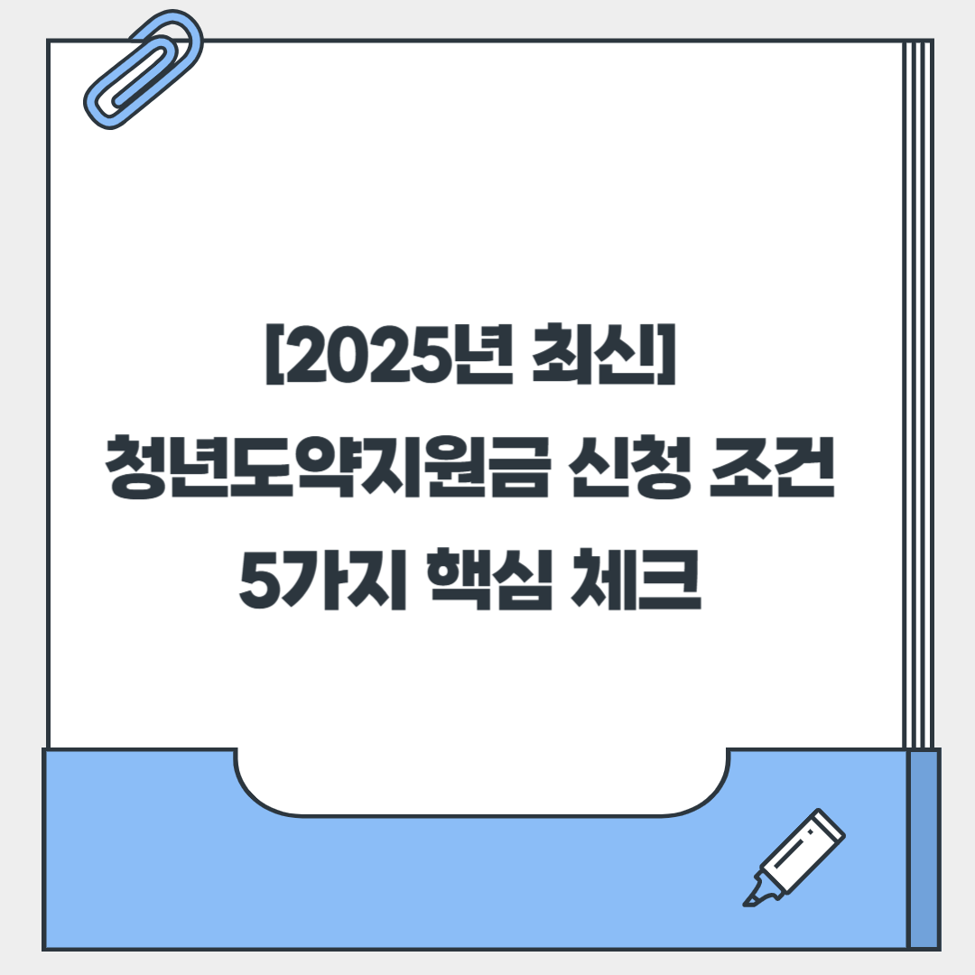그런데 알고 보면 생각보다 간단해요! 핵심 조건 몇 가지만 딱 확인하면 신청 자격 여부를 바로 알 수 있답니다. 오늘은 2025년 기준으로 청년도약지원금을 받기 위해 꼭 알아야 할 5가지 핵심 조건을 쉽고 친절하게 알려드릴게요. 복잡한 내용은 모두 생략하고, 여러분이 가장 궁금해할 만한 내용만 쏙쏙 뽑아왔으니, 이 글 끝까지 읽고 지원금 신청에 한 발짝 다가가 보아요! 😊