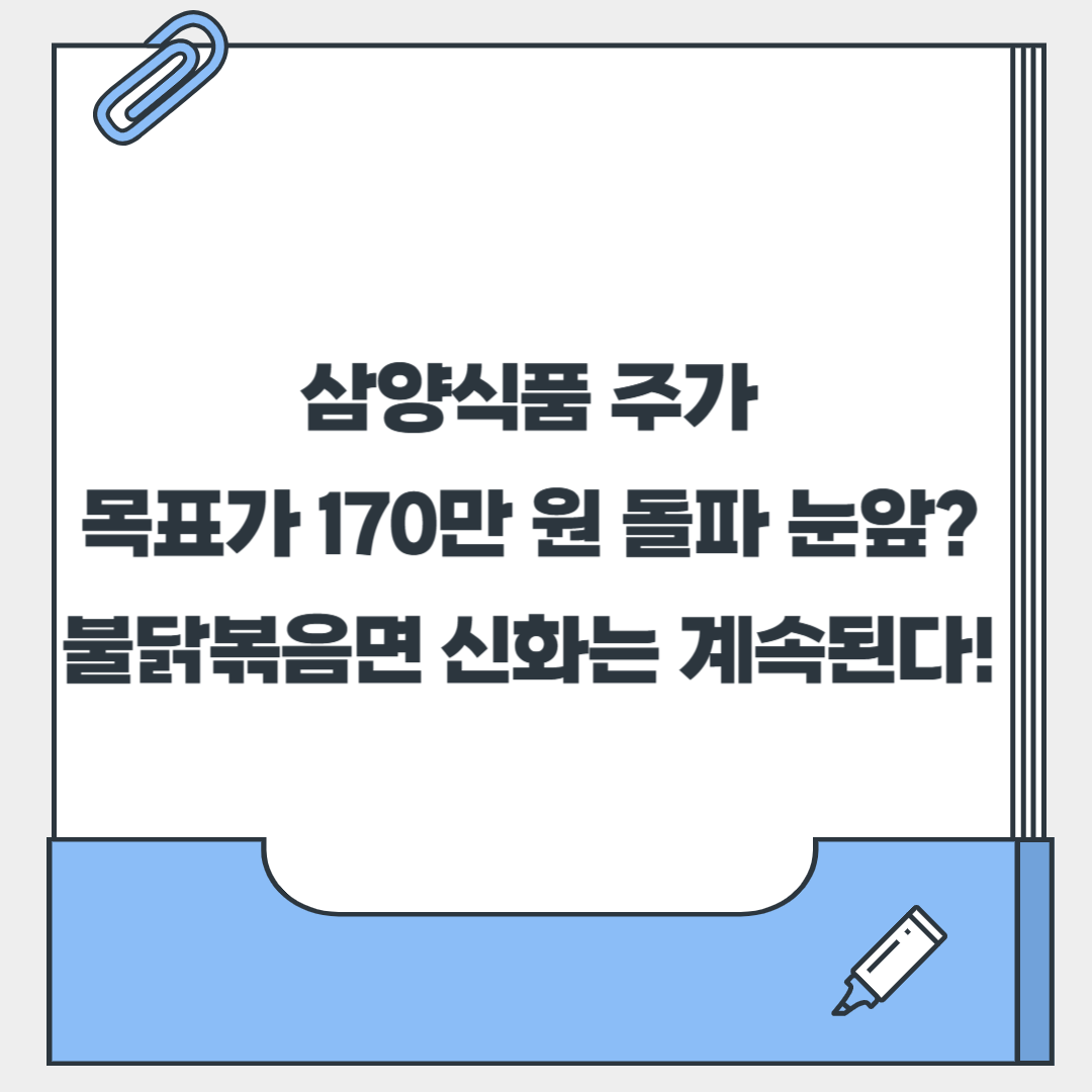 안녕하세요, 주식 블로거입니다! 요즘 주식 시장에서 가장 '핫'한 종목을 꼽으라면 단연 삼양식품이 아닐까 싶은데요. 오늘도 6% 넘게 급등하며 160만 원을 훌쩍 넘어서는 기염을 토했습니다. "와, 진짜 끝없이 오르네... 지금이라도 타야 하나?" 고민하는 분들 정말 많으실 겁니다. 그래서 오늘은 삼양식품이 과연 지금의 주가를 뒷받침할 만한 튼튼한 펀더멘탈을 가졌는지, 그리고 차트는 우리에게 어떤 힌트를 주고 있는지 함께 살펴보시죠! 😊