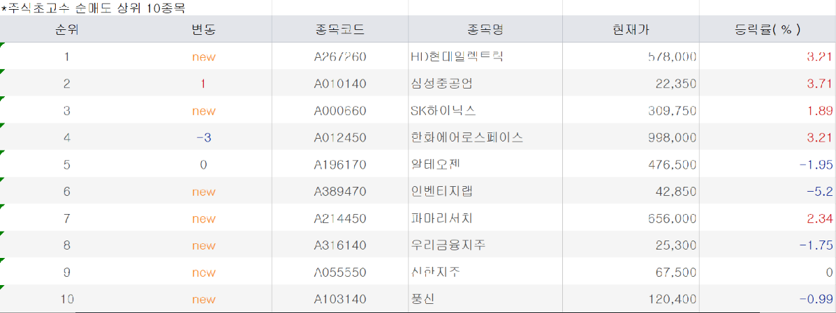 반대로 주식 초고수들이 대거 순매도한 종목들도 있었어요.